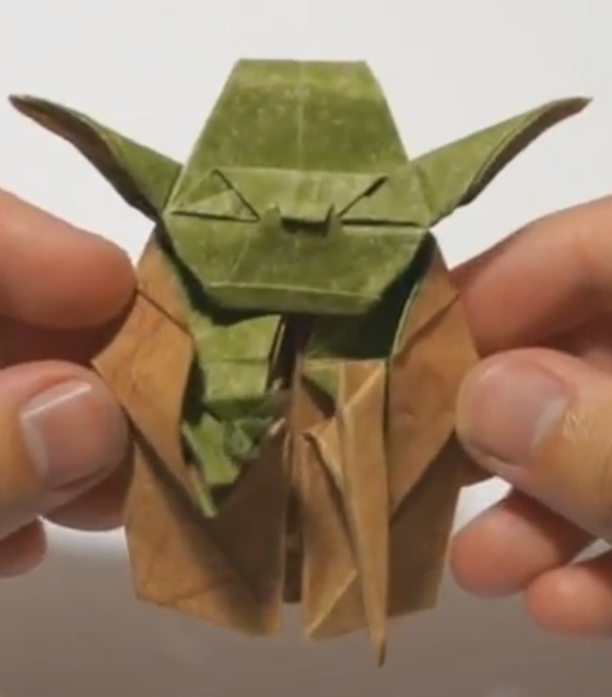 Der jedi master yoda ist von mir aus einem quadrat gefaltet und das ohne schnitte bzw.